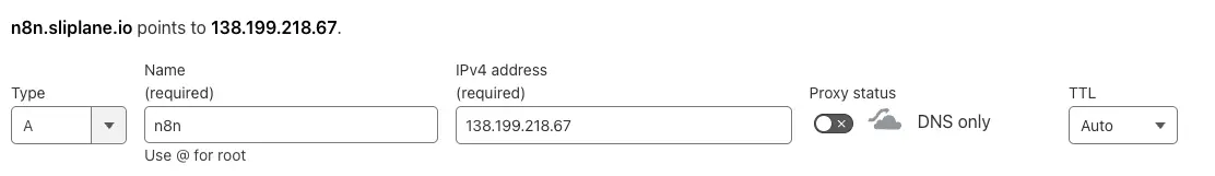 Right now we are directly exposing n8n to the internet. This is usually fine, but if you want to sleep better at night, you can use Cloudflare to
